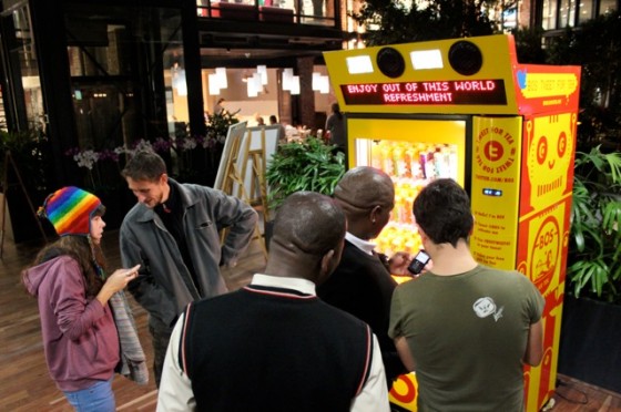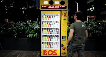 BOS, brand produttore di thé freddo, ha da poco lanciato online «The Incredible Sampling Robot» il primo distributore al mondo di bevande fredde che si paga a tweet, installato in Wembley Square, Cape Town.