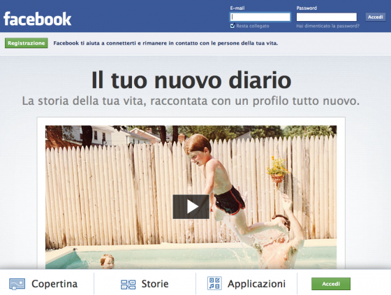 Infatti se dirigiamo i nostri browser su https://www.facebook.com/about/timeline gli utenti italiani leggeranno: