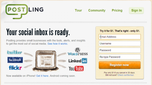 Postling è la terza (da considerare forse proprio in ordine di importanza) tra le applicazioni più popolari tra quelle che agevolano il content management sui social network. Il concetto guida è sempre lo stesso: tutti i social media account gestibili in un unico spazio.