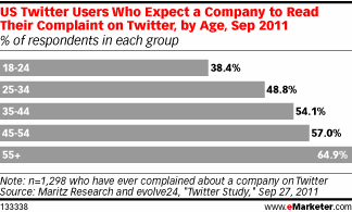 Tuttavia, ad oggi, solo un terzo dei Tweet-Reclami ha ricevuto una risposta dai brand. I consumatori della fascia di età dei 55 e oltre nutrono grosse aspettative sul fatto che i brand leggano e rispondano quando prima ad una loro richiesta.