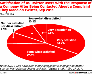 Nonostante il divario tra le aspettative dei consumatori e le risposte dei Brand, i consumatori sono notevolmente positivi nel momento in cui la marca si prende la briga di rispondere concretamente a una lamentela. L’analisi di Maritz indica che l’86% degli utenti che ha lanciato una lamentela via Twitter, avrebbe gradito ricevere una risposta; il 75% di chi è stato ascoltato si è infine dichiarato soddisfatto della risposta ricevuta dalla società.