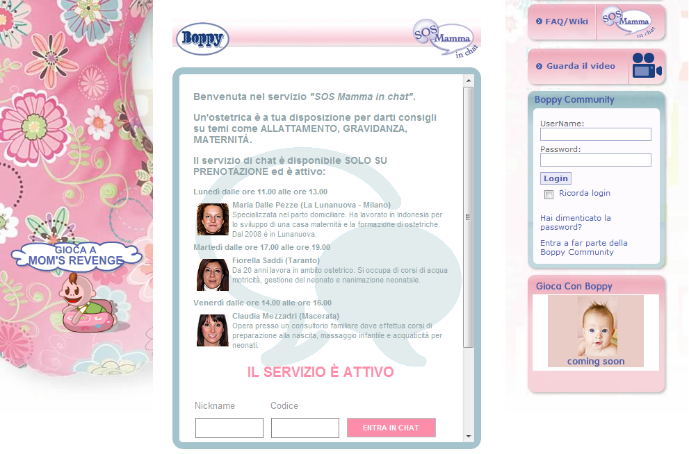 E’ dai dati raccolti dalle oltre 400 telefonate registrate, che Boppy ha pensato di creare uno spazio di confronto personale sui dubbi e le problematiche legate alla esperienza della gravidanza, del parto, della maternità e al ruolo del genitore.