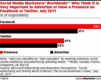 Nonostante le grosse difficoltà nel mantenere ed alimentare le community che hanno creato online, i marketers ritengono che essere presenti sui social network sia più importante della pubblicità stessa su questi siti.