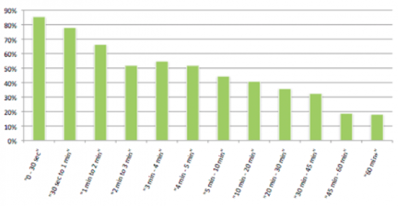 Per entrare più nel dettaglio, è stato rilevato che i video clip da 30 secondi sono state visualizzate dall’inizio alla fine dall’85% delle persone, mentre la percentuale di visualizzazione completa dei video clip di durata tra i 2 e i 10 minuti è del 50%.